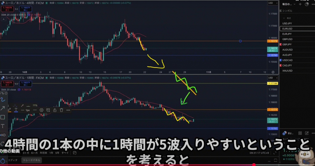 日足のダウカウントが見る人によって2パターンあるので、1hがごちゃごちゃになっている!これはアハッ
