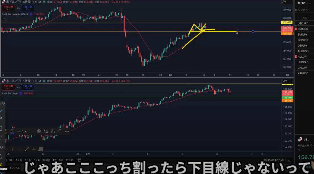 明らかに割ると下目線の安値があってもMAに支えられてTTSの卵でゴチャゴチャになりやすい場合安値ではなく、少し下の意識されている部分効いて抜けるとTTSと判断になる場合もある