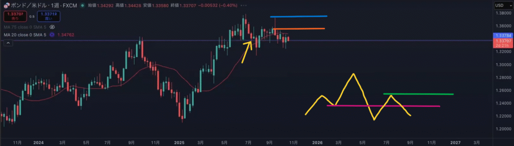 ・黄色ラインの下には買い支え勢力