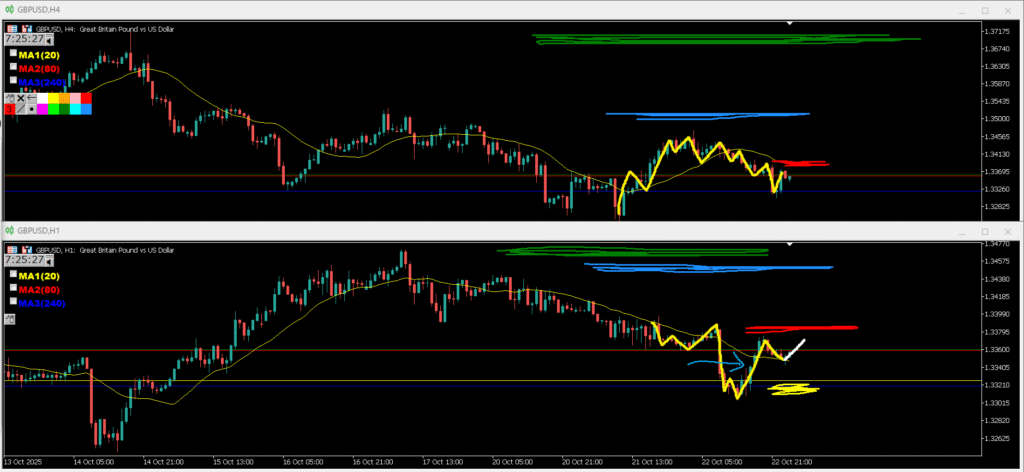4h押し目買いになりやすく波が出た場合日足の売り抑え勢力によって白のラインで止められやすい。