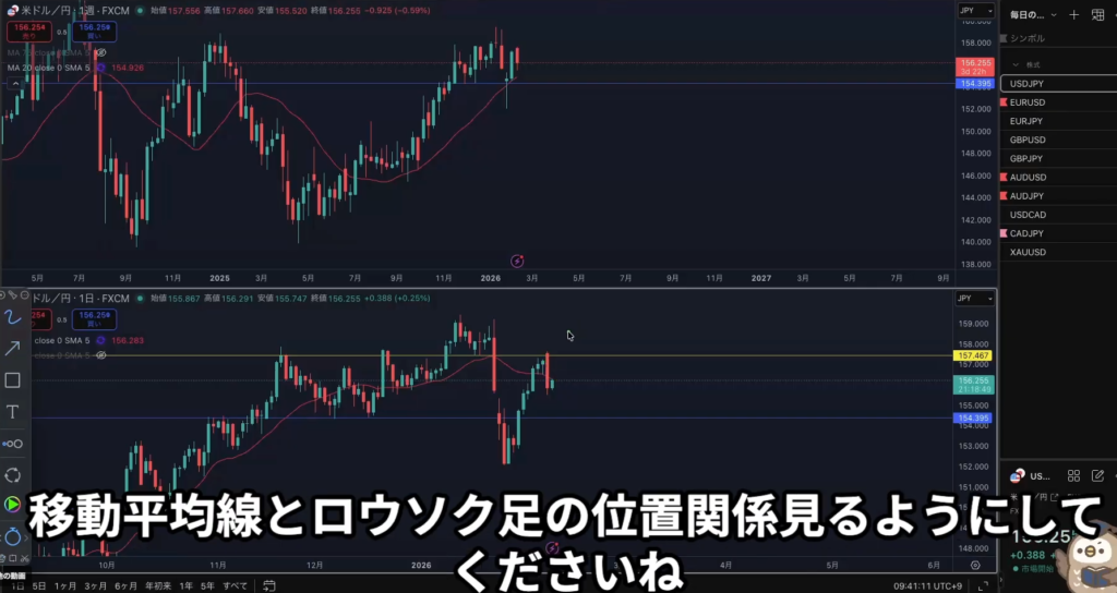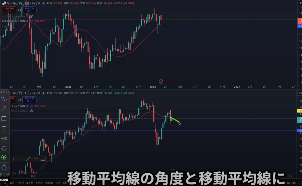 MAの角度とローソク足に対してMAがどちら側にあるのかなど位置関係を常に意識しておく