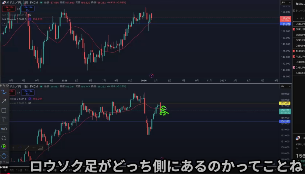 ・迷う場面では移動平均線の位置を優先し、ヒゲを入れて考える。