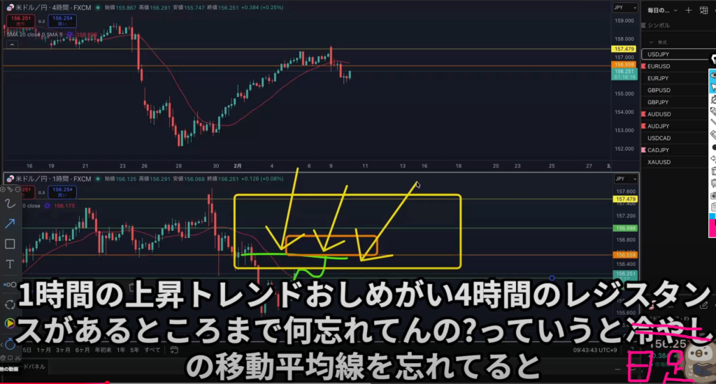 ・1時間の押し目買いだけで判断せず、日足の移動平均線の抵抗も考慮する。