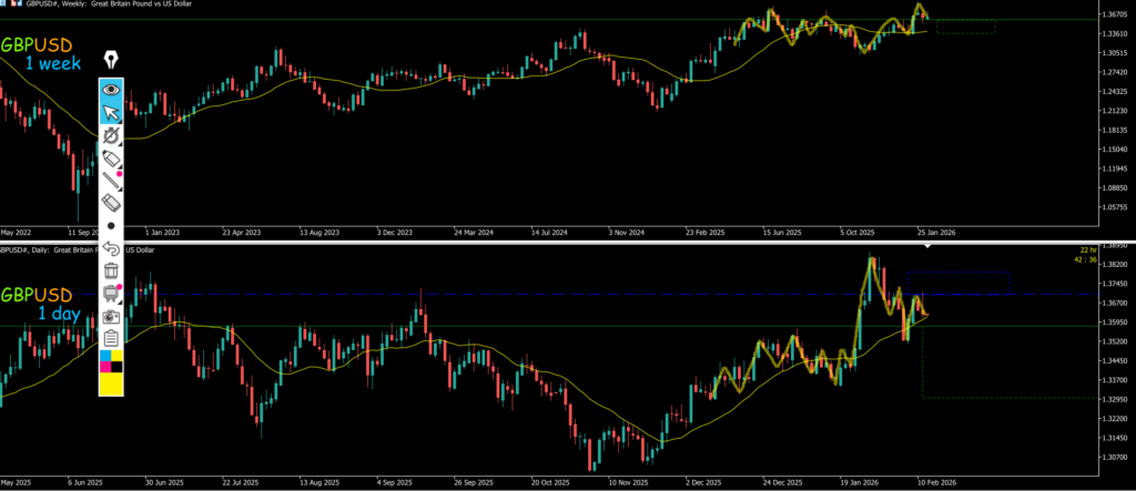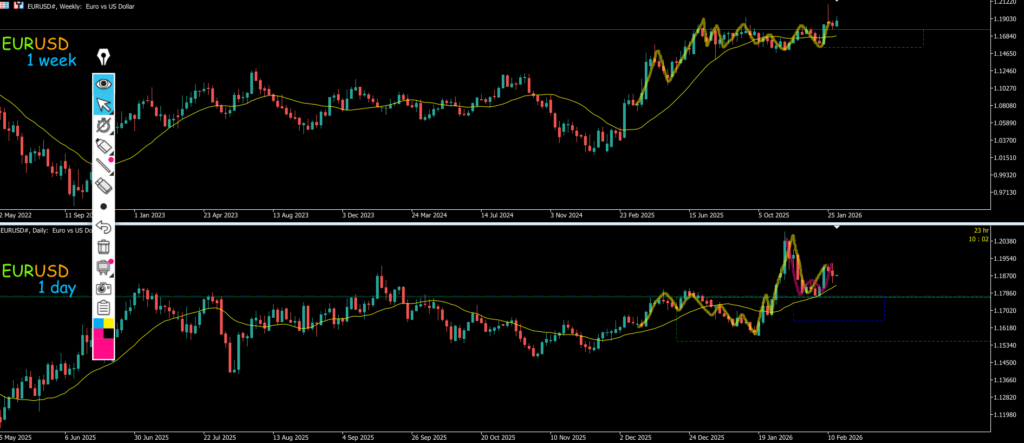 ・黄色の□に押し目買い・戻り売り・買い支え・売り抑え勢力
