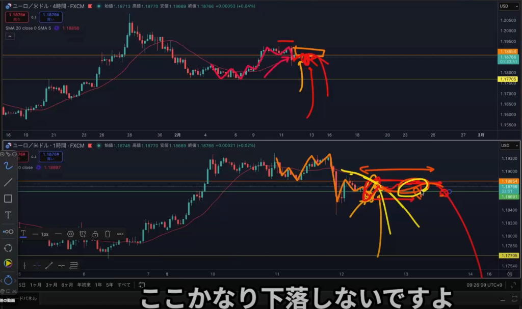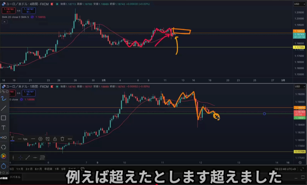 ・矢印の陽線のヒゲは雇用統計で動いた時のものなのでポキッと折って考えたい