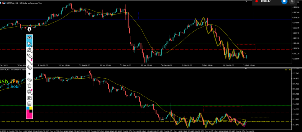 日足MAは支えてきていて4hMAは抑えてきている為ゴチャゴチャする可能性がある、4h調整のヨコヨコになっていので為明確な高安抜けまで時間経過を待ちたい
