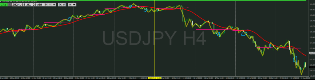 ・点線を抜けると下目線でトレンド転換シグナルになる