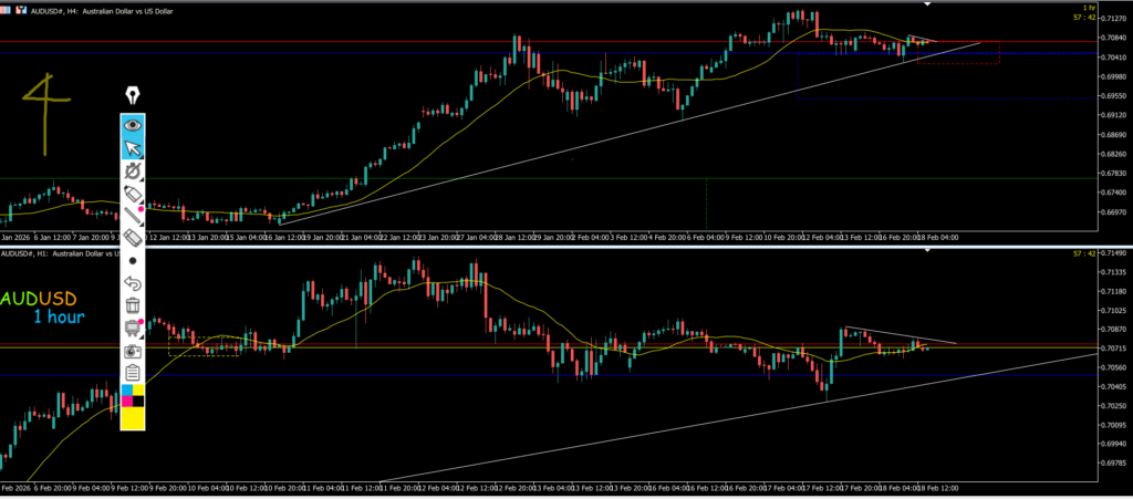 4h押し目買いの波は出ず1hで一旦下降して再度上昇した事によって日足水平線で4hが止まった、ダウは小さく見えるが引き続き1hドコオワでのエントリーを考えていきたい今現在の1hドコオワのエントリーポイントは4hのブレイクと殆ど同じポイントになっている