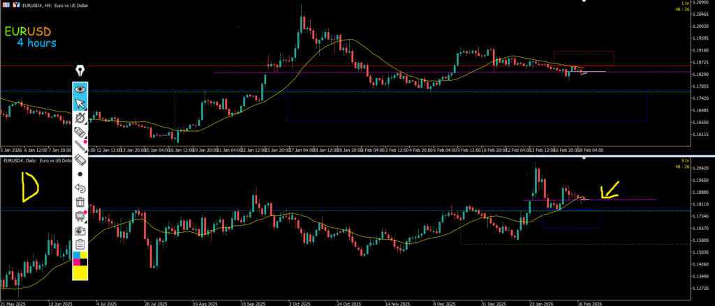 週足のレジスタンスラインで日足が止まりつつあって週足の真上になる為ここから4h押し目買いは考えにくいが、週足でも何度も止められているエリアで日足も二番底になっており日足戻しの波も水平線とMAを抜けてきているので上が強い可能性もあるように思う