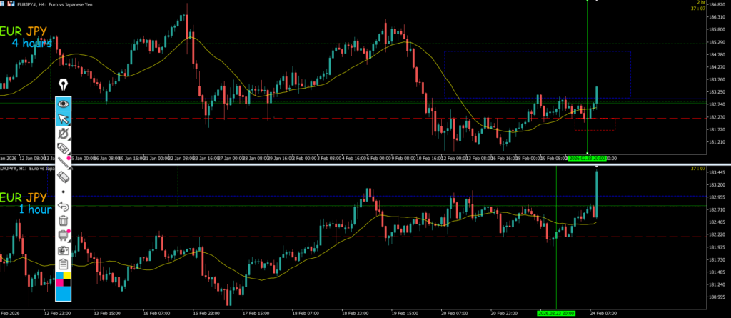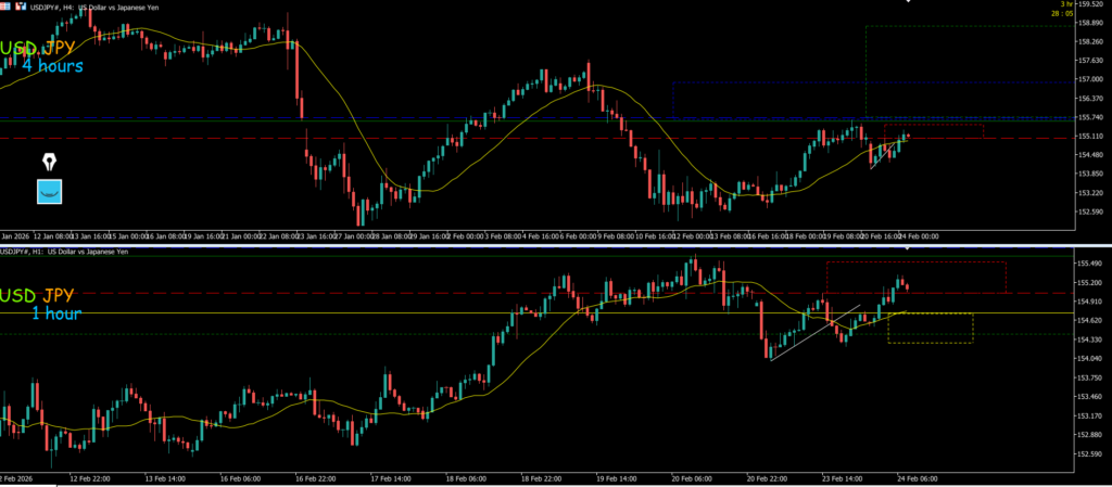 日足全戻しで4hは戻り売りなので水平線で止まればエントリーを考えていきたい、その場合4h1h同時安値割れなので攻防ライン抜けがエントリーポイントになる