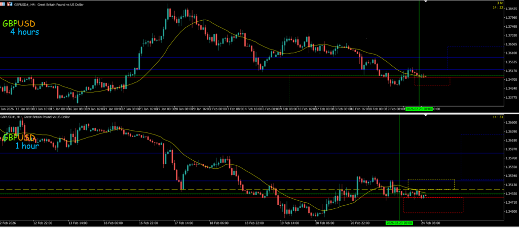 1hは下になって4h押しの波で水平線を抜けて深くまで押して来ている