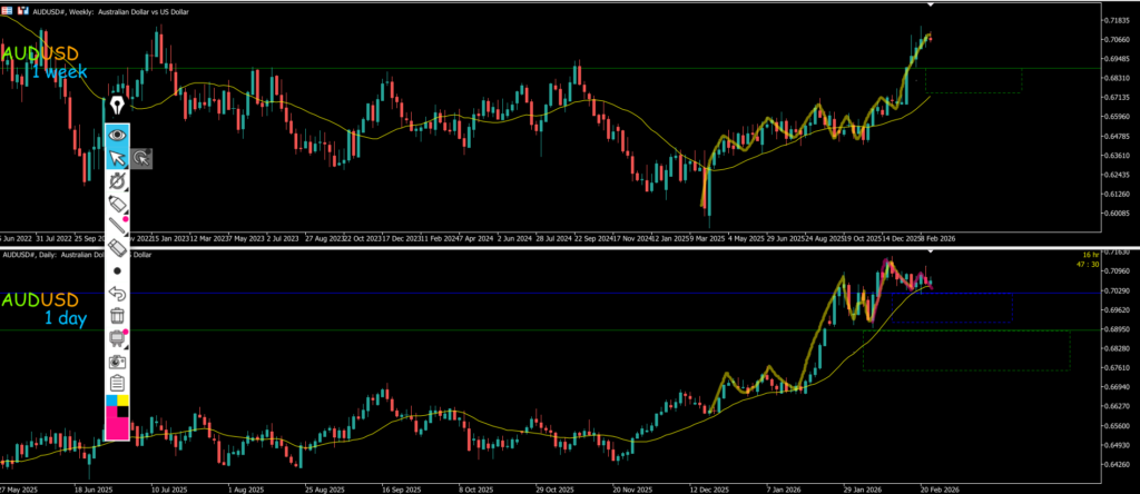 buy SL13pips 0.70674~0.70585/0.3 ①②③ポジション