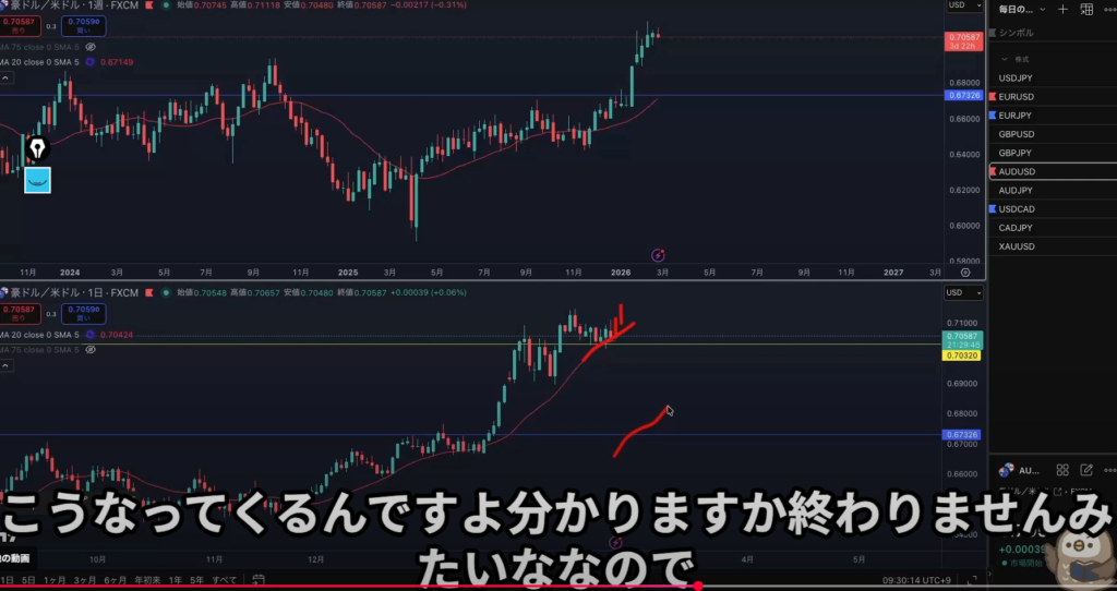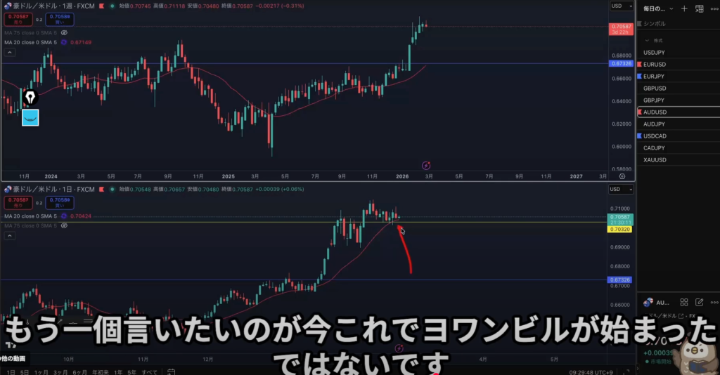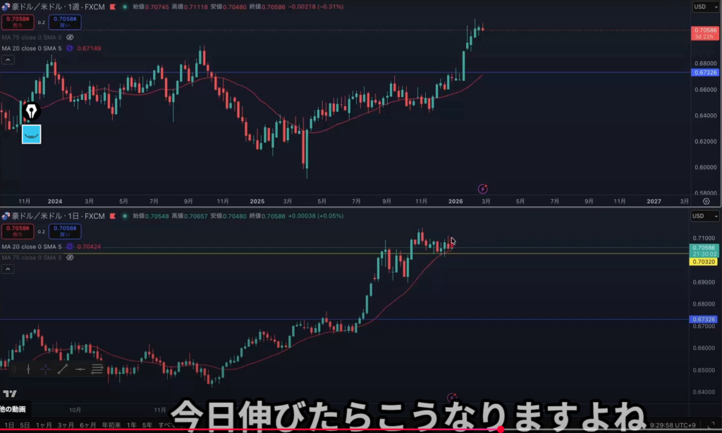 よく見たら日足の波真上近いし週足と日足逆じゃん