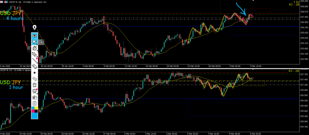 ただ4hレジスタンスライン抜けでTTSが出た場合に1h押し目買いになれば1hトレードを考えていきたい日足の戻しの波になる可能性がある