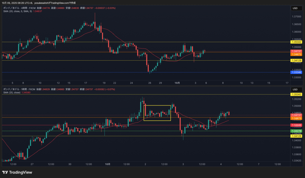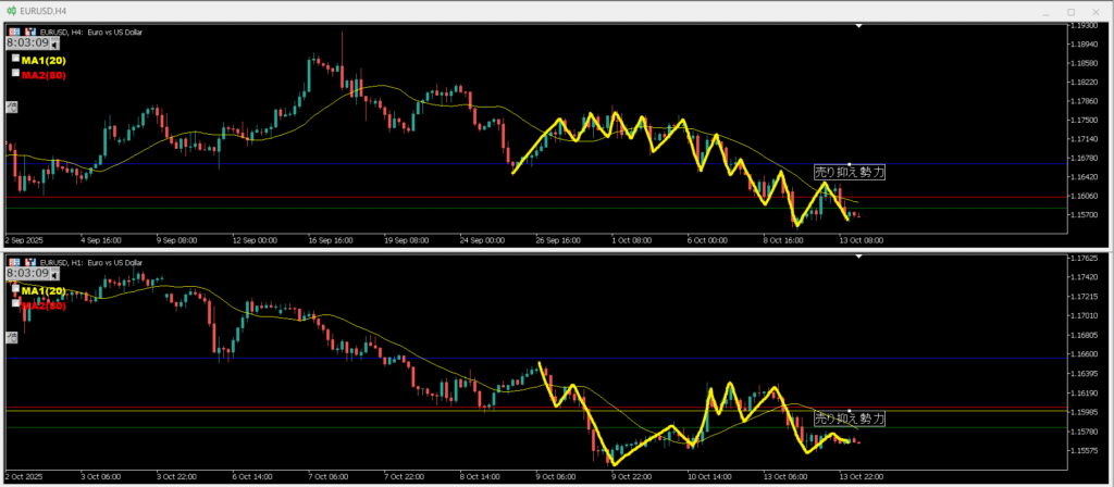 方向は下で4hが待ちの状態なので1hでも待つのみ。