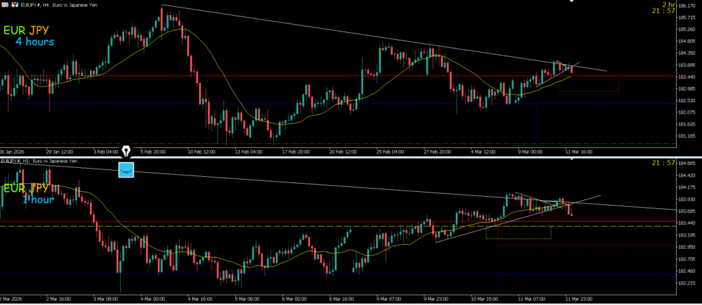 日足上昇の波途中で4h水平線で止まれば押し目買いを考えていきたい波的には欧州辺りに感じるが1hも上の為攻防ライン抜けでのエントリーになる