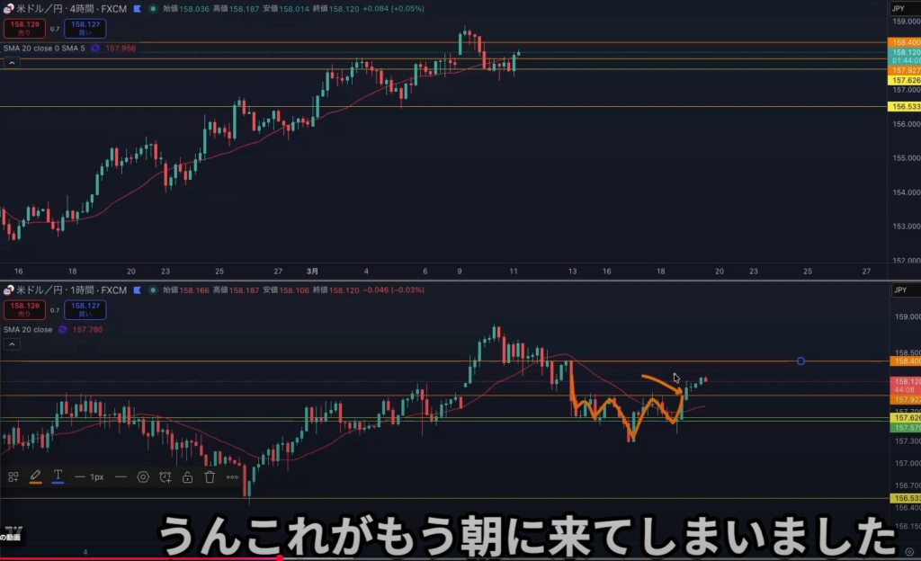 4h高値までに最も意識されそうなところで止められているな~