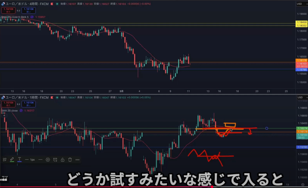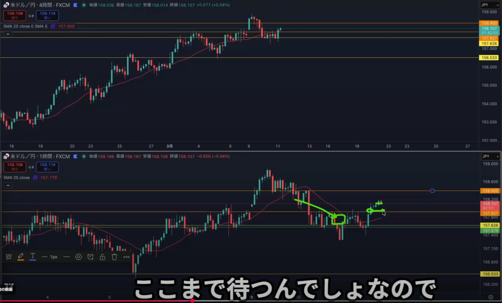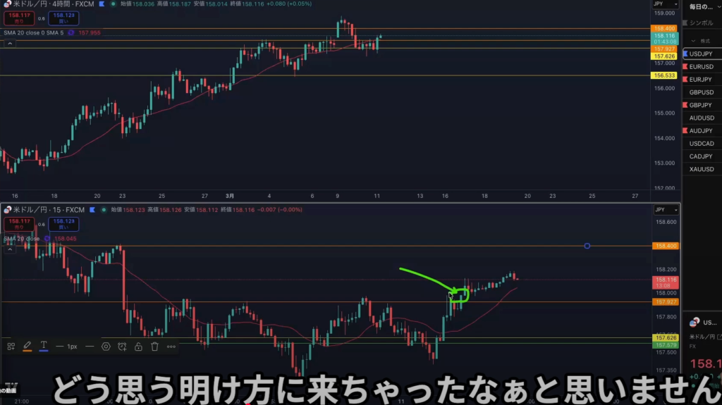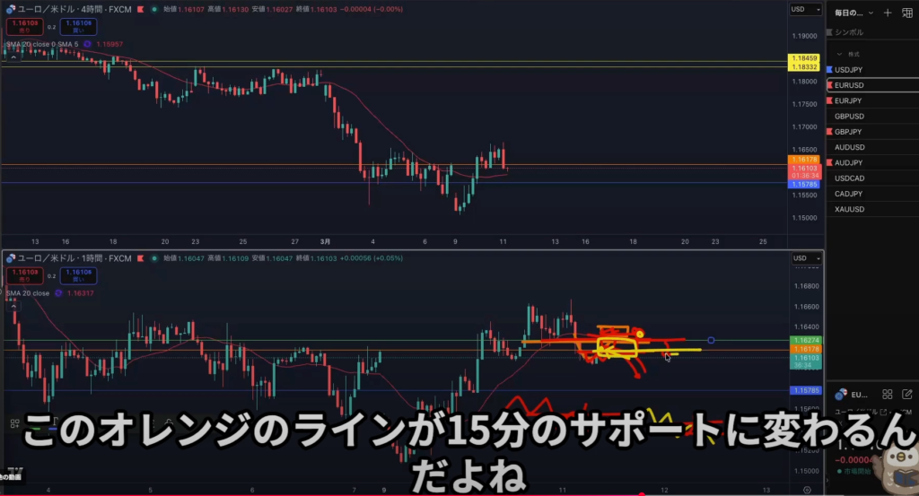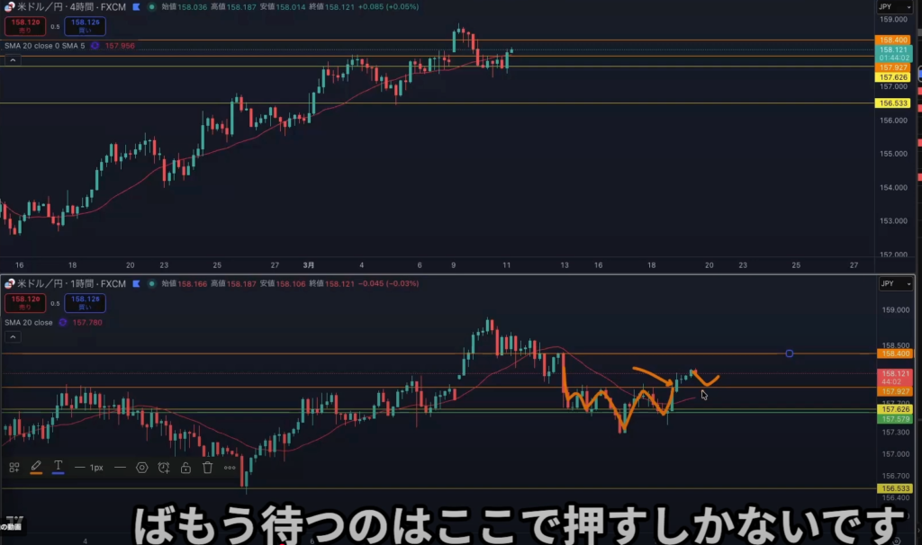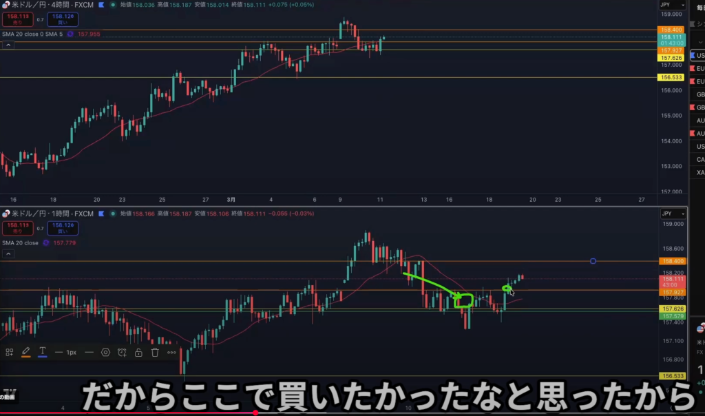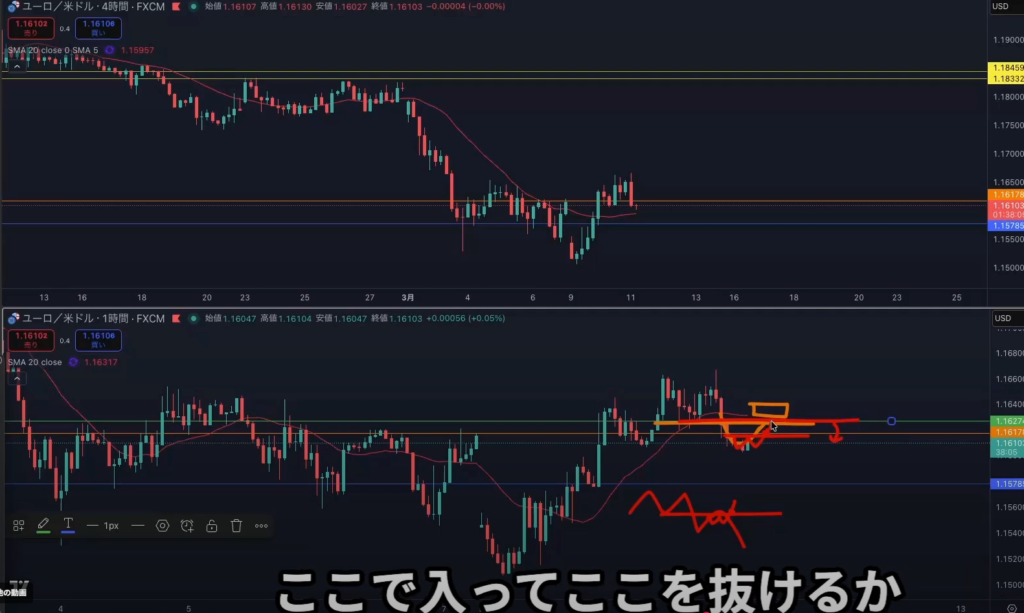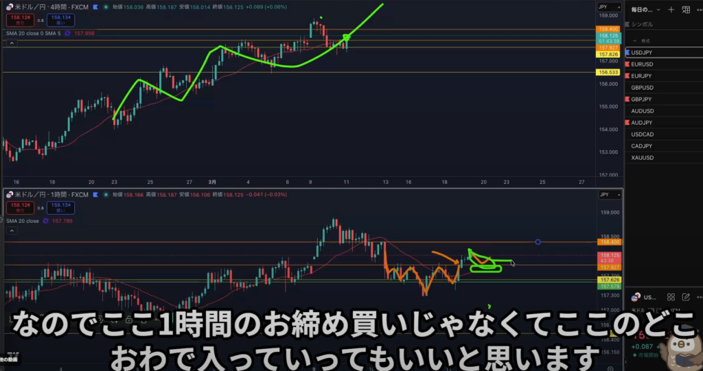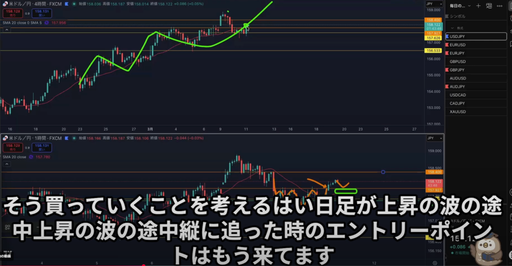 日足レジスタンスライン抜け後から4h1hで日足の上昇の波に乗れる可能性はある