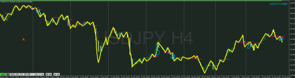 結果的に日足のレジスタンスラインで一旦戻って来たので環境認識通り4hで大きな波は今のところ出てはいない