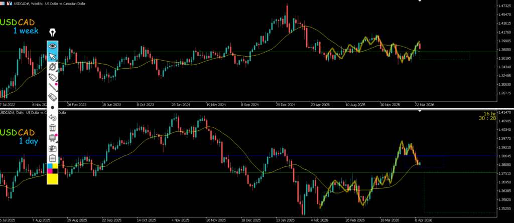 緑が週足 青が日足 赤が4h 黄色が1h