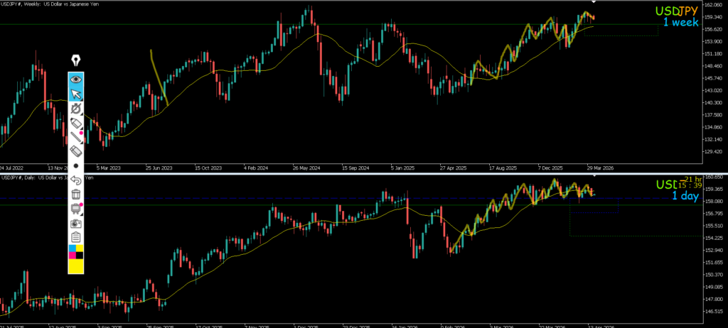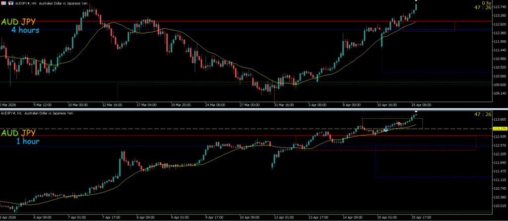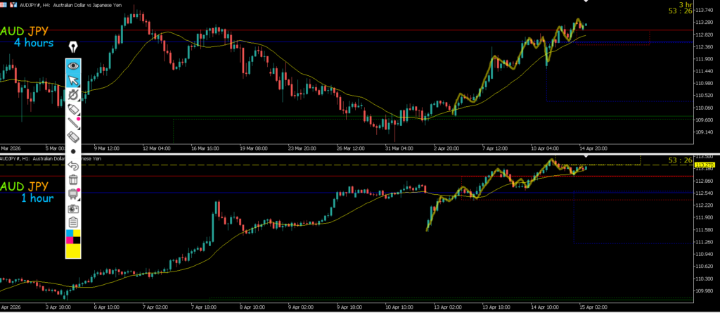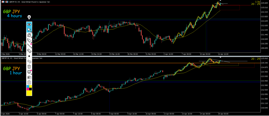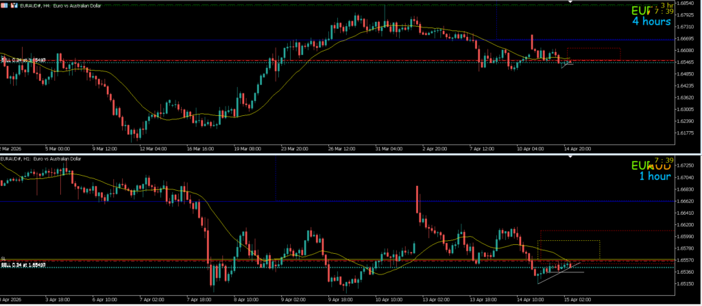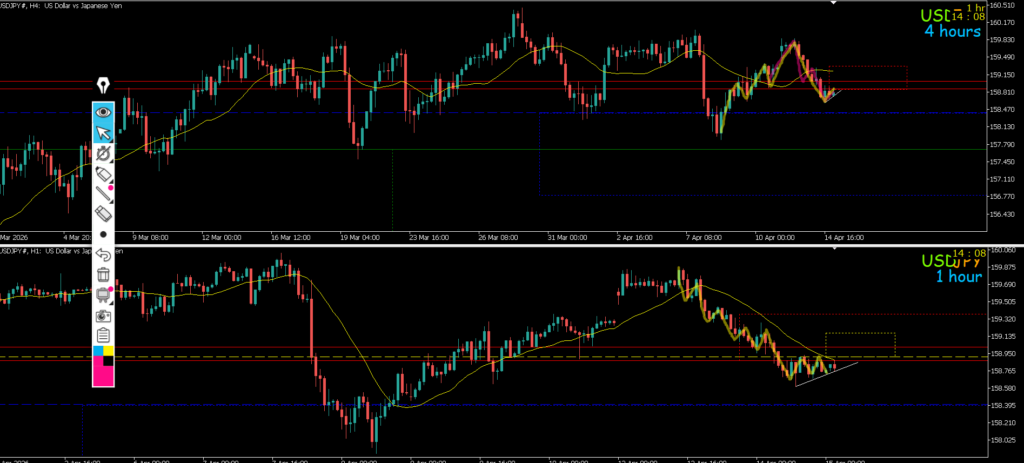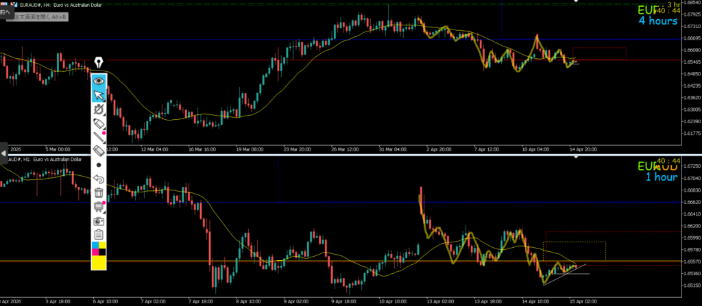 4h水平線で止まれば戻り売りを考えていきたい1hも下のままなので攻防ライン抜けになる