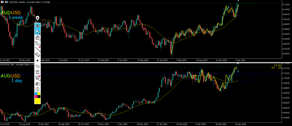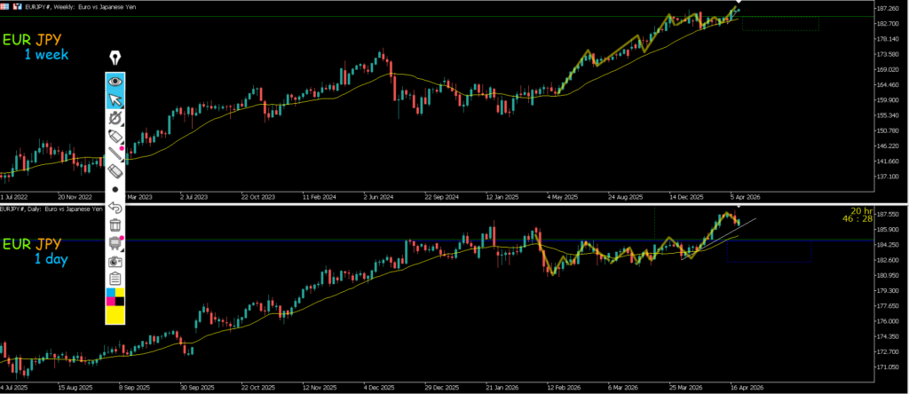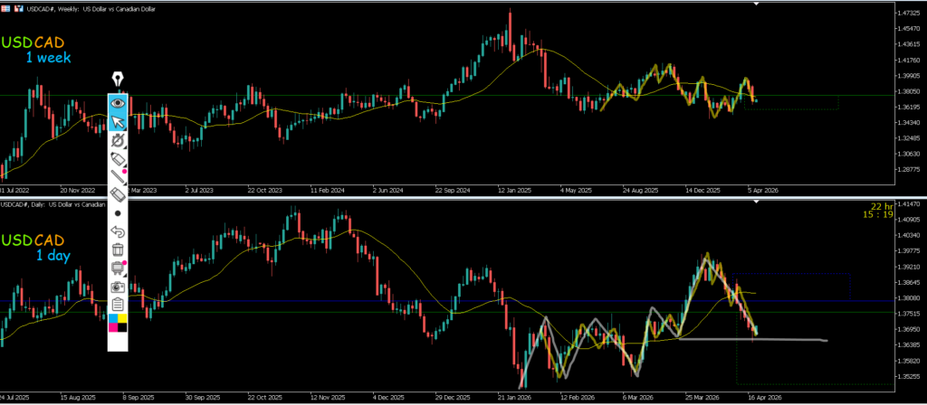 週足はレジスタンスラインで止められ日足は押しの波になっている