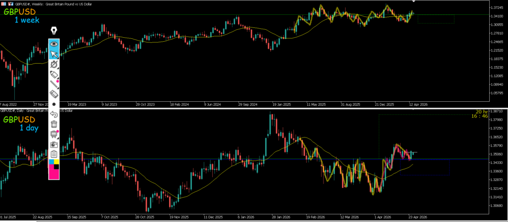 この場合日足の1hドコオワと4h押し目買いのエントリーポイントは同じだが1hが下にはなっていないので4h押し目買いは今のところエントリーポイントは攻防ライン抜けになる