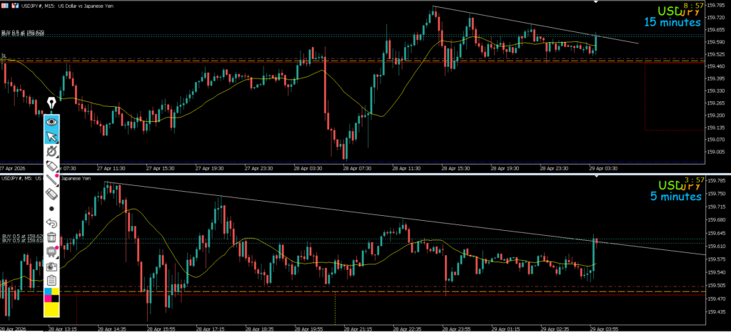 4h高値越えと判断して水平線で止まれば押し目買いを考えていきたい