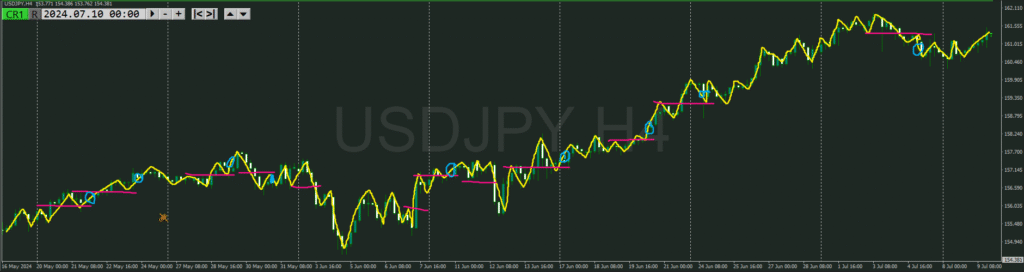 ・先にある青の水平線で止まったとしてもそれは日足の押し目買いなので、4hで押し目買いは勢力の確認が出来ていないので狙ってはいけない
