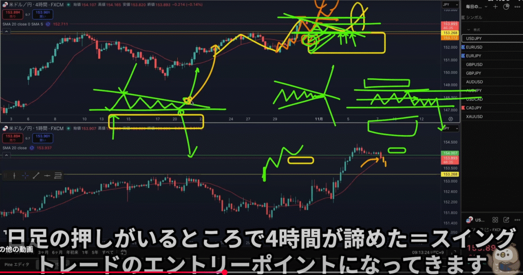 日足と4h同時の事だがいつもの4h1hと結局は時間軸が違うだけ!