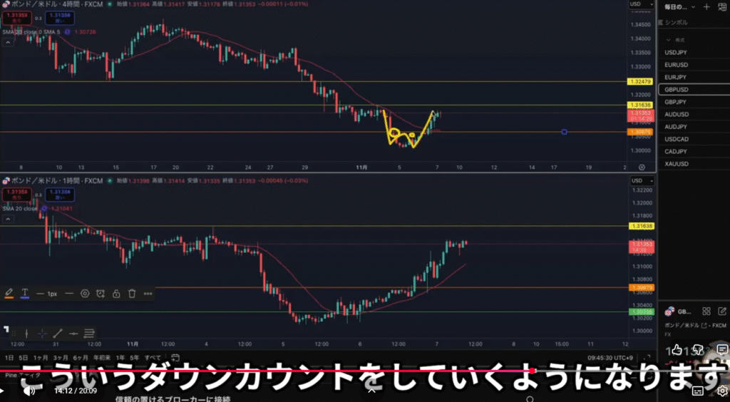気になるヒゲなどを仮想高安としてダウカウントしていく。