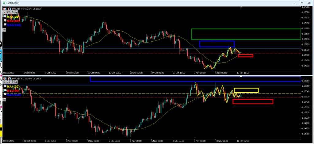 緑が週足 青が日足 赤が4h 黄色が1h