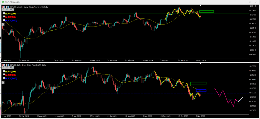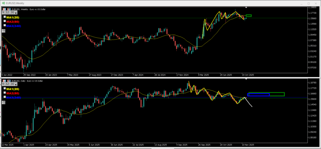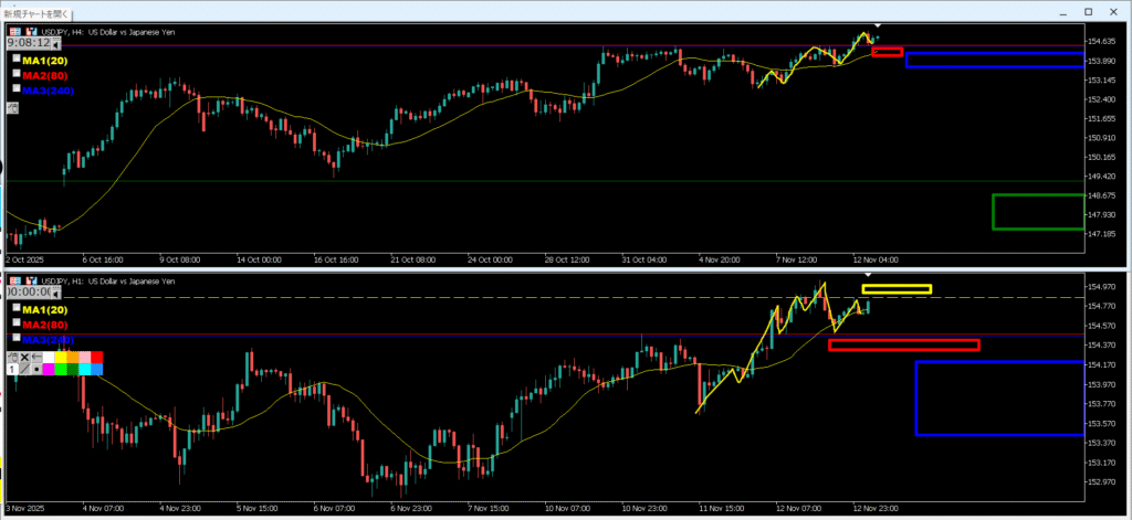 ・黄色ライン抜けで下目線だがMAが買い支えてくる可能性があるので、トレンド転換シグナルの卵になりやすい