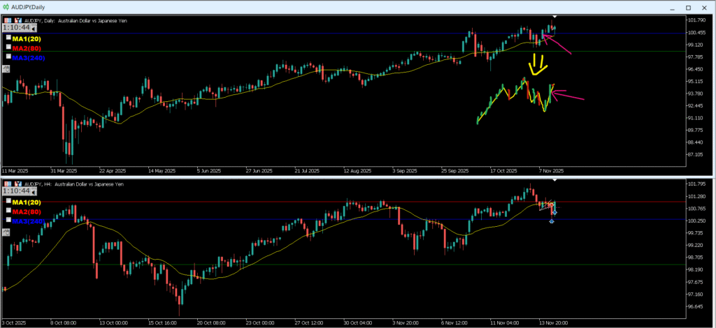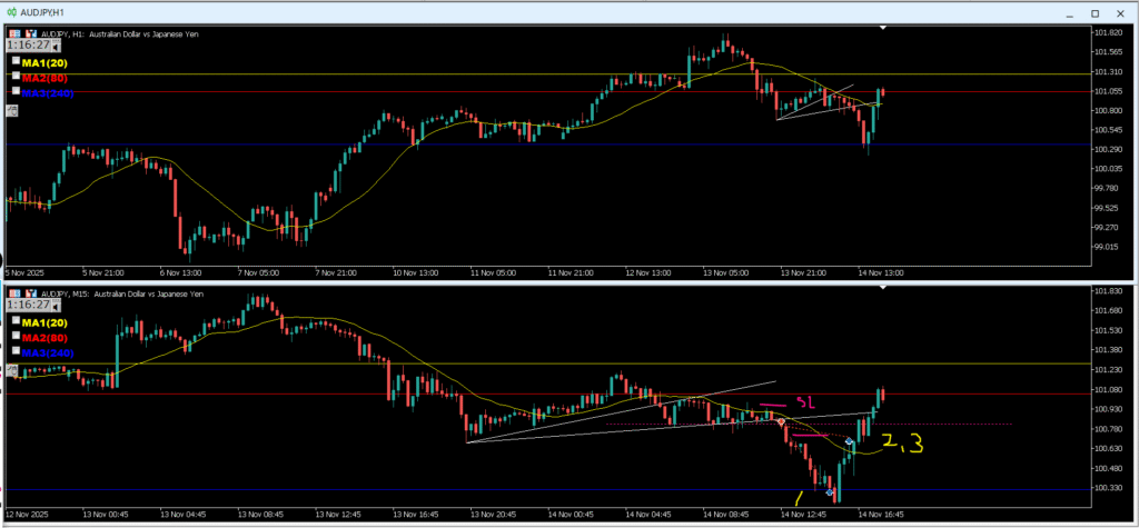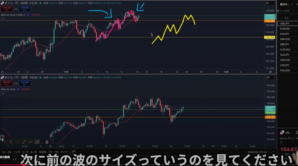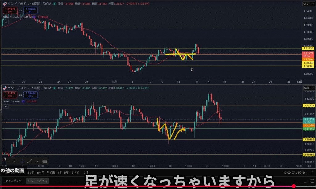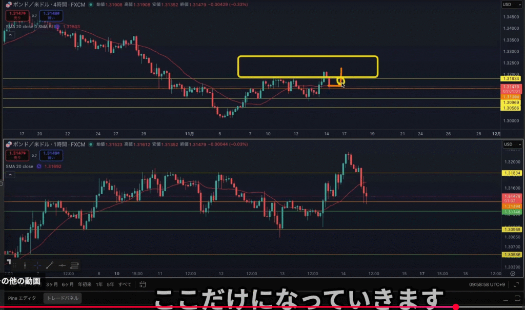 25/11/14環境認識養成講座18:00~で前日のトレードを解説されている。