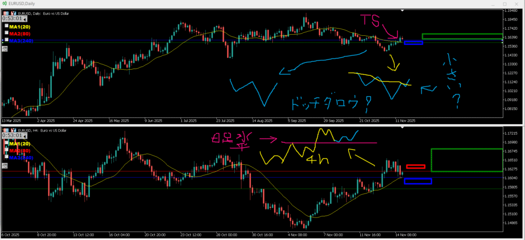 波的に4hがローソク足1本~2本足りないので欧州後半~NYになりやすい、日足の押し目買いでもある事を頭に入れておく