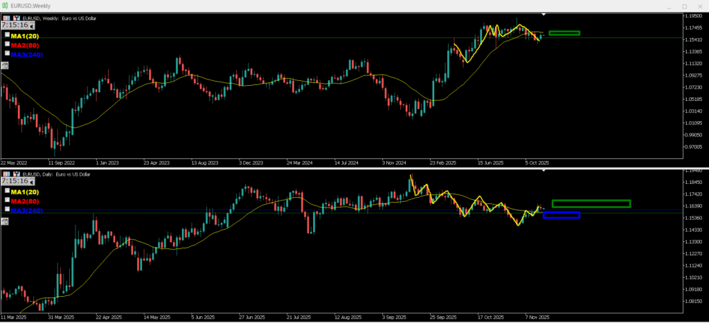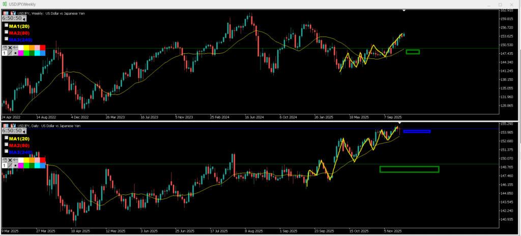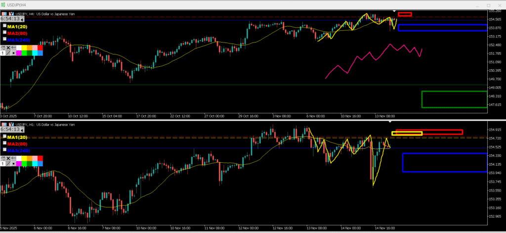 ・青のラインへ来ると止められやすく押し目買いになりやすい。