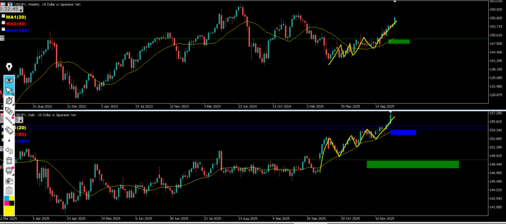 ・黄色のラインへ来ると止められやすく押し目買いになりやすい