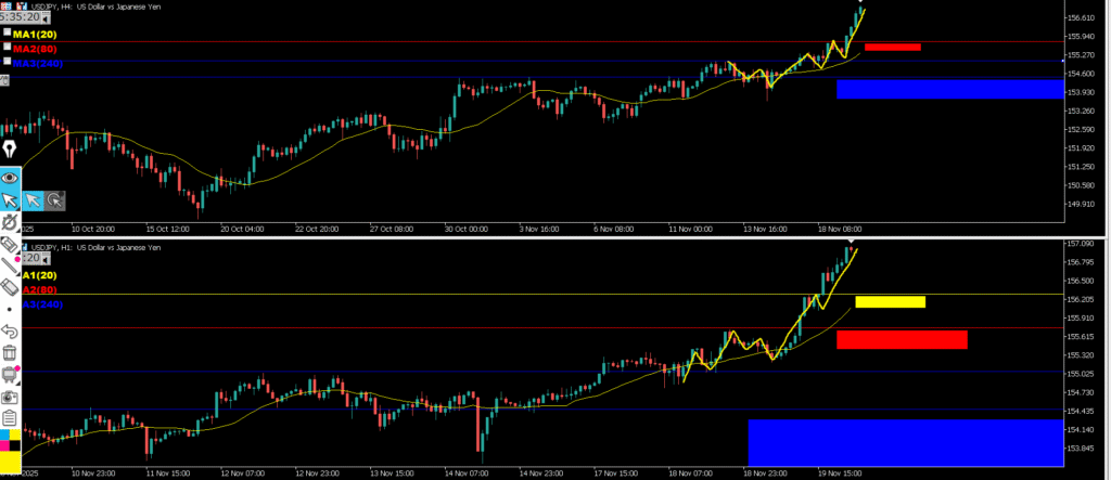 ・黄色のラインへ来ると止められやすく戻り売りになりやすい