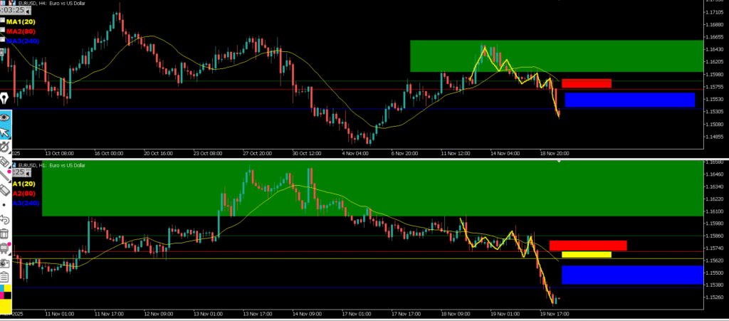 ・浅い方の水平線は4hのダウが見えていて、押してきた場合浅い方の水平線が意識される可能性もある