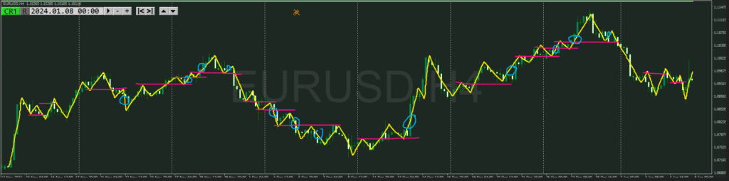 ・黄色ライン抜けで上目線トレンド転換シグナルになる