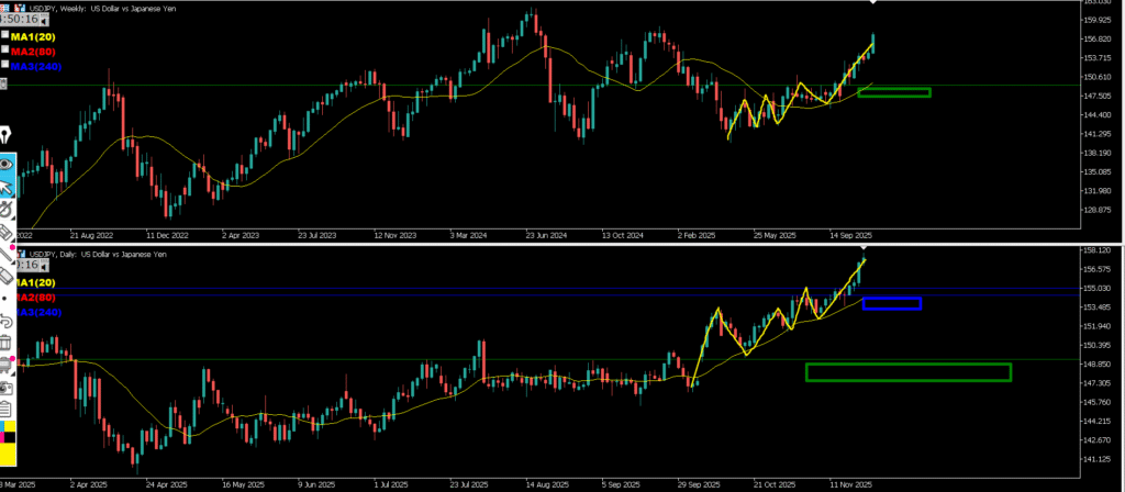 ・青のラインへ来ると止められやすく押し目買いになりやすい