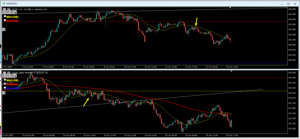 1h押し目買い否定の15mネックラインエントリーの場合、絶対に守らないといけない事は4hの波がもう来るという大前提がある事!!